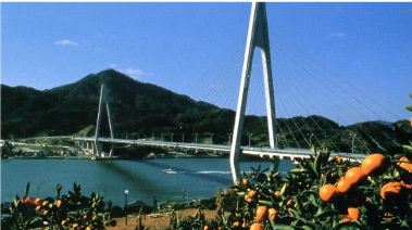 | Construction outline | This cable-stayed bridge has a composite structure which combines steel girders for the central span with PC girders for the side spans. |