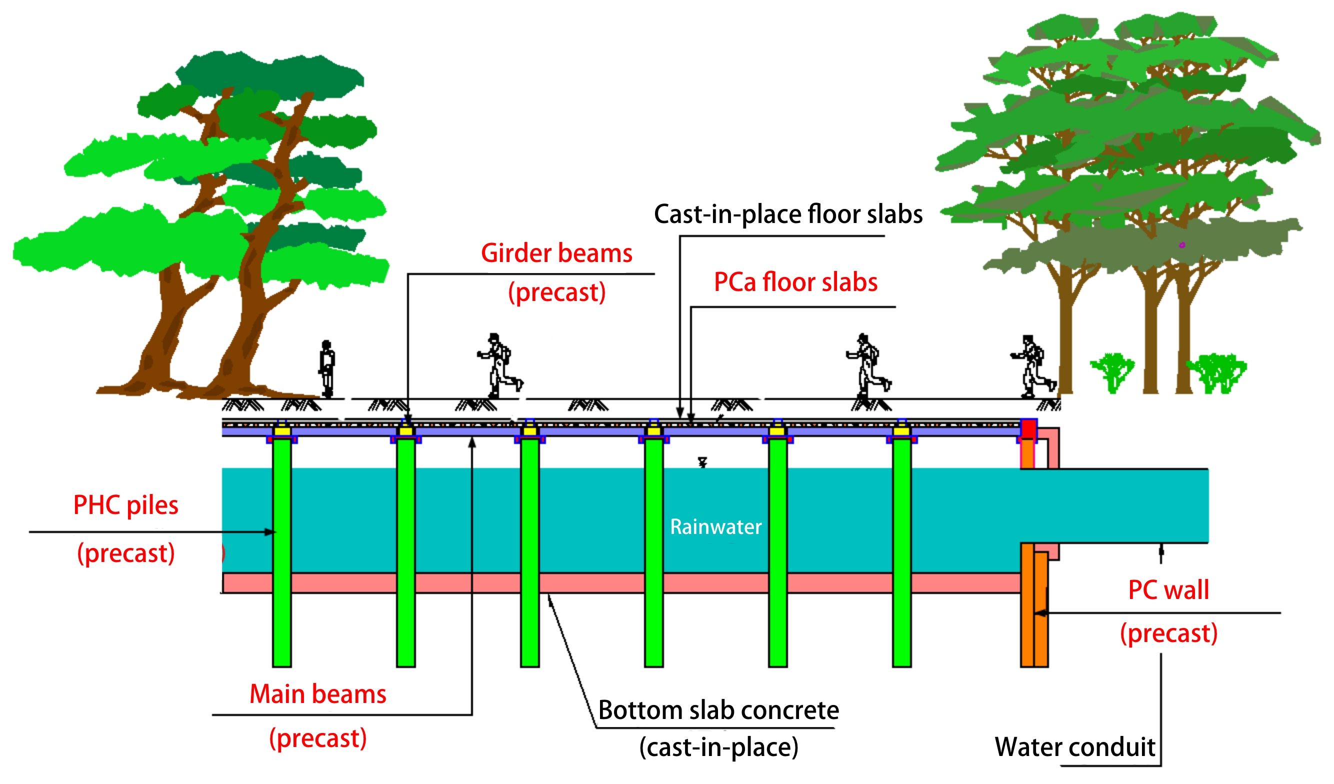 [Rainwater reservoir] Shortened construction period, reduced construction costs and improved seismic performance due to utilization of precast members