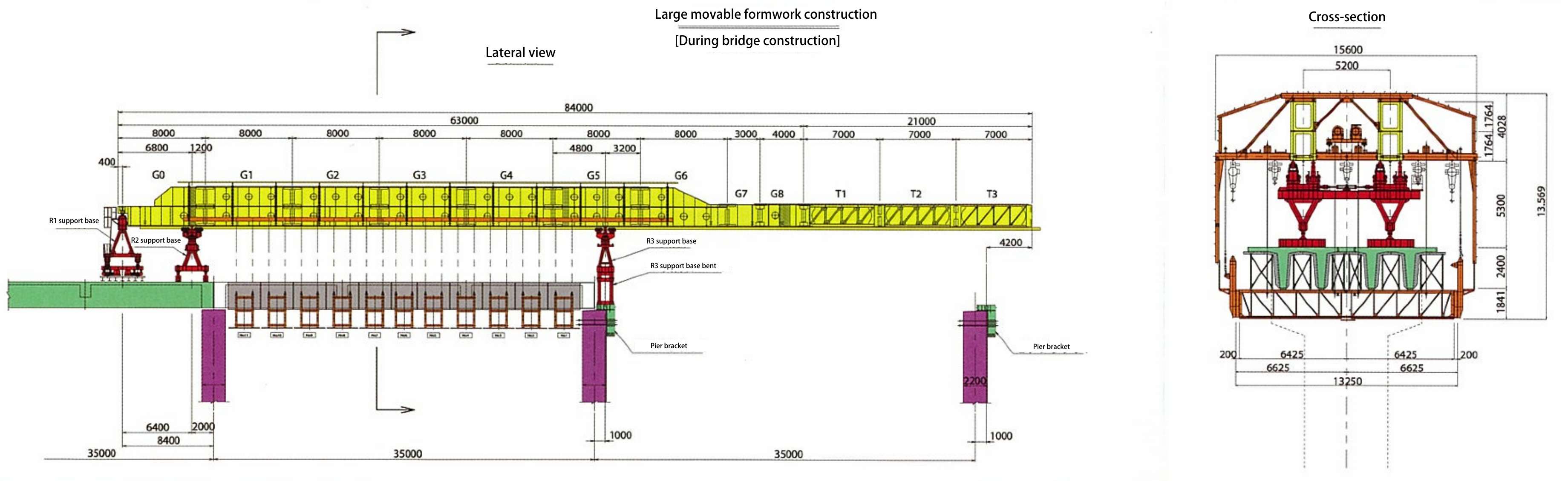 Large movable formwork construction is a method which involves combining steel girders and formwork and mechanizing the movement of the steel girders and formwork assembly/disassembly to construct one span after another.