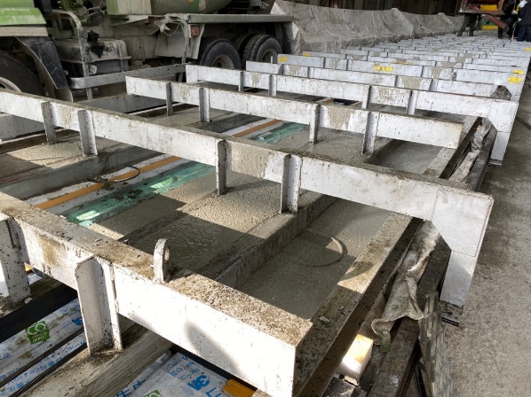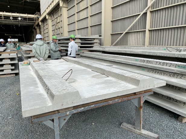 DM slabs are inverted, T-shaped precast concrete slabs which have thermal insulation on their bottom surface and which are used for the lowest floor. PC steel members inserted into the ribbed sections are used to prestress the slabs.