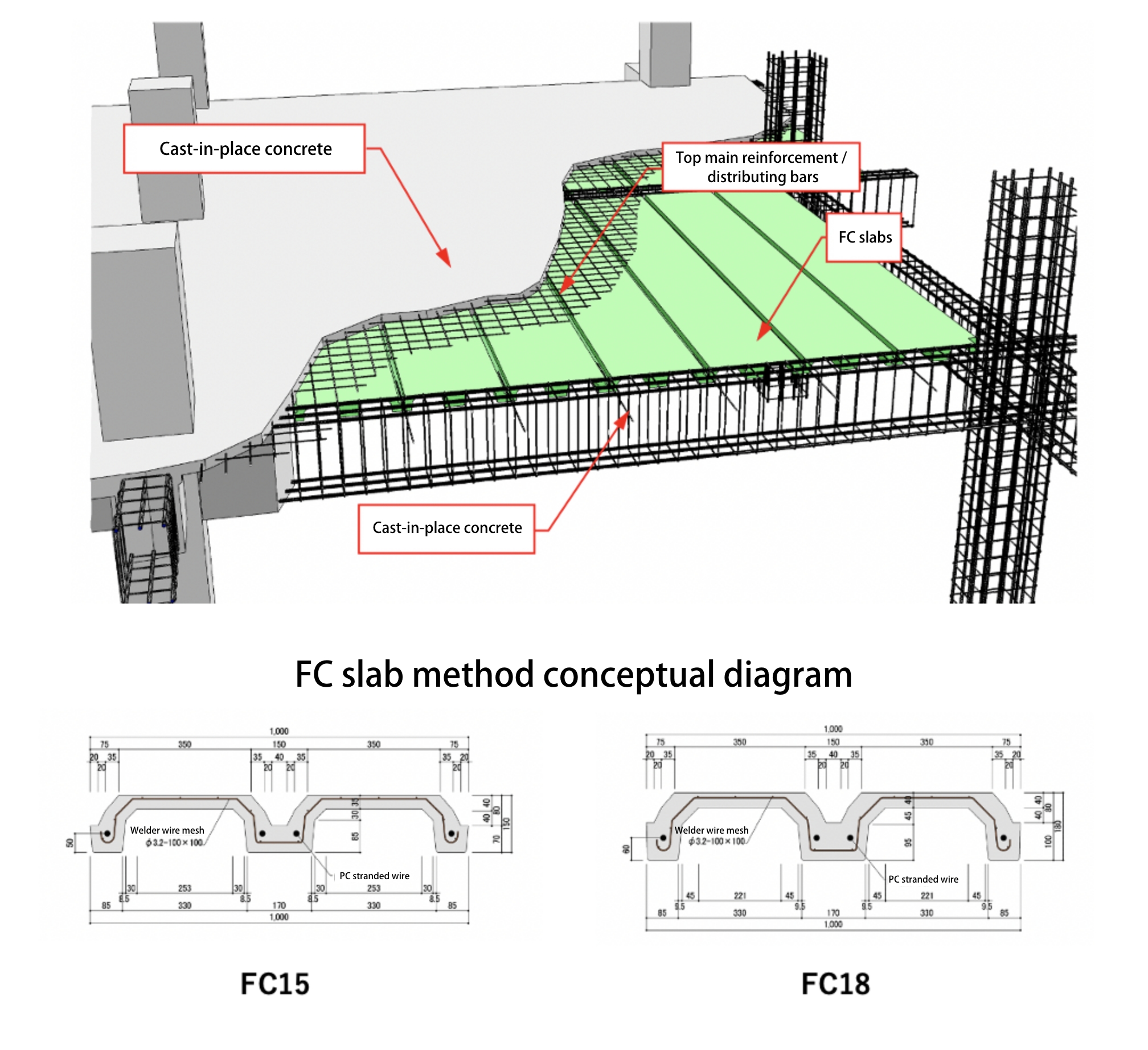 FC slabs can be installed without the use of shoring, thereby reducing the amount of on-site work involved.