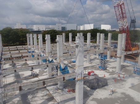 Because the pillars, beams and other members are precast, this greatly contributes to a reduction in the use of wooden formwork.